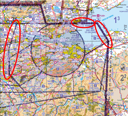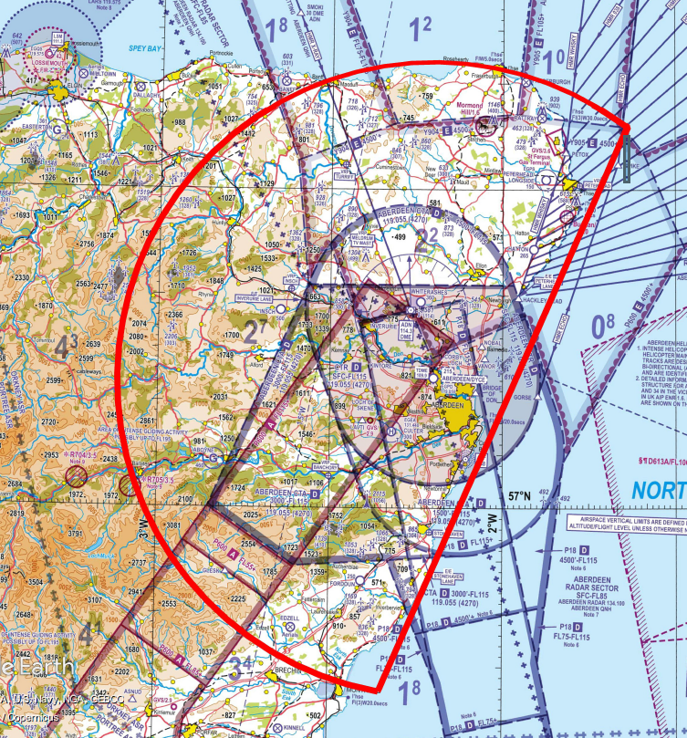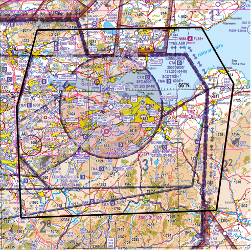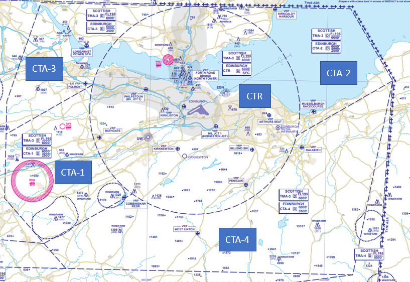 Above RMZ Areas 2 and 3 are the Class A Pepze CTA-1 and CTA-3 which extend upwards to FL195; the controlling authority for this airspace is Scottish Area Control Centre (callsign Scottish Control on 128.055 MHz)