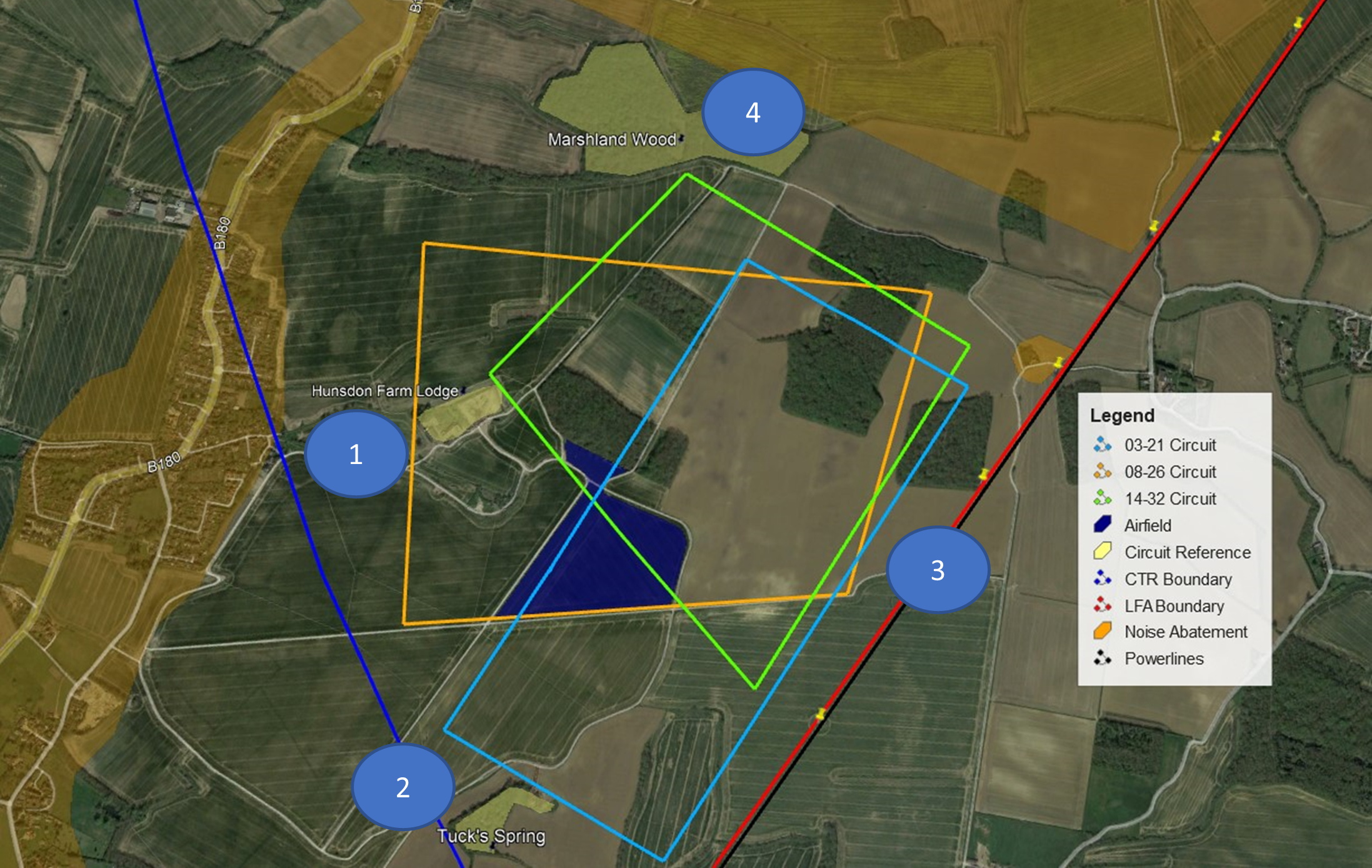 No overhead joins are permitted due to the controlled airspace above. Straight in approaches are not encouraged due to integrating with circuit/joining traffic via the following VRP’s.