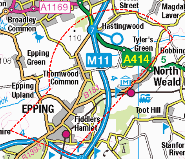 Beaulieu VRP is the site of the old RAF Beaulieu aerodrome on Beaulieu Heath. It can be identified at having 3 former runways in the standard WWII triangular configuration with the apex to the north.