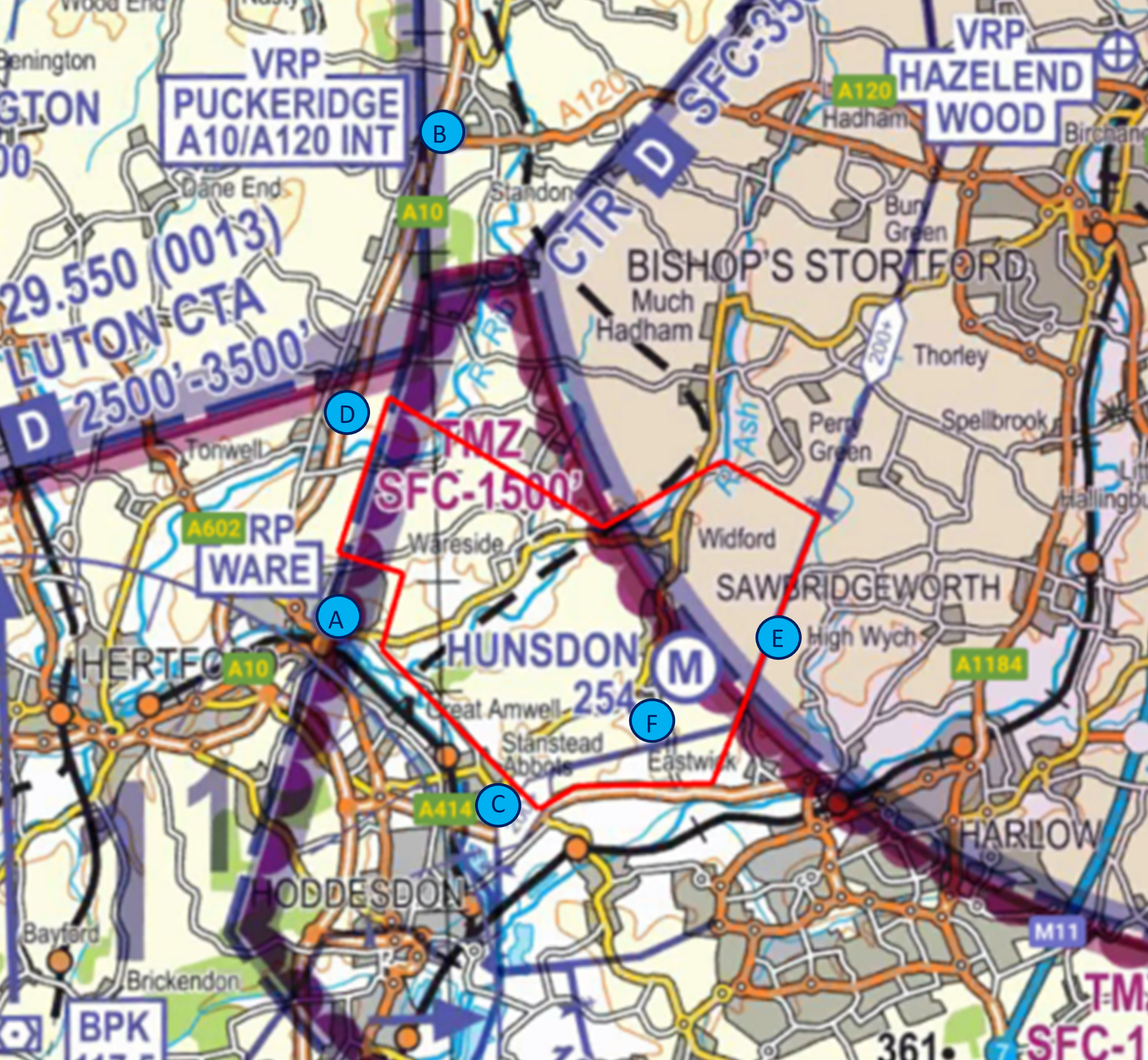 Fairoaks aerodrome has a standard Aerodrome Traffic Zone (ATZ) of 2NM radius which extends from the surface to 2,080 feet AMSL. Much of the ATZ lies within the London Control Zone (CTR), and this portion is referred to as the Fairoaks Local Flying Area (LFA) which extends to 1,500 feet AMSL. To simplify access, two fillets, one to the East, and another to the West, have been added to the LFA (Figure 1).