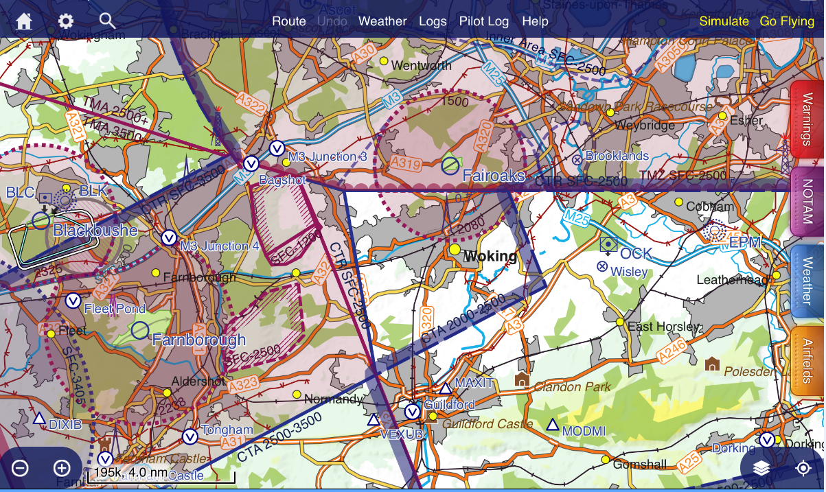 It is recommended to use a VFR Moving Map as part of both your pre-flight route planning and in-flight to display the most ‘up to date’ airspace situation. Ensure your device is connected to the internet when planning your flight.