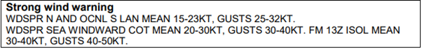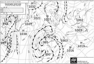 - The forecast 2,000 feet wind at 5230N 00E was 340/35 (35 knots at 90o to the planned track)