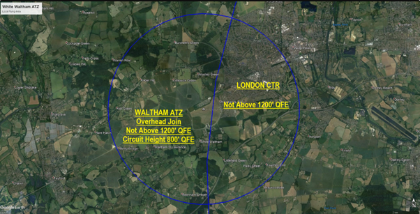 White Waltham aerodrome sits partly within the London CTR and has an ATZ of 2NM radius extending from the surface to an upper limit of 2,000 above, or 2,127 feet AMSL. As a portion of this ATZ sits within the London CTR, a Letter of Agreement (LoA) is established between the air navigation service provider and the aerodrome to allow aircraft to operate within the portion of the ATZ that lies within the CTR as long as specified conditions are complied with. These conditions are listed in UK AIP AD 2 EGLM WHITE WALTHAM AD 2.22 FLIGHT PROCEDURES (see Figure 1 below). Flights must not leave the ATZ when within the London CTR unless in receipt of an individual clearance from Heathrow Radar.