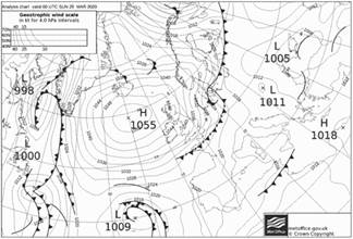 At the time of the infringement the local QNH both at Brize Norton and Fairford was 1003 hPa. The cloud was BKN (5-7 oktas) at 4,800 feet and the forecast 5,000 feet wind on the UK Low-level Spot Wind Chart (Form 214) was 190/30.