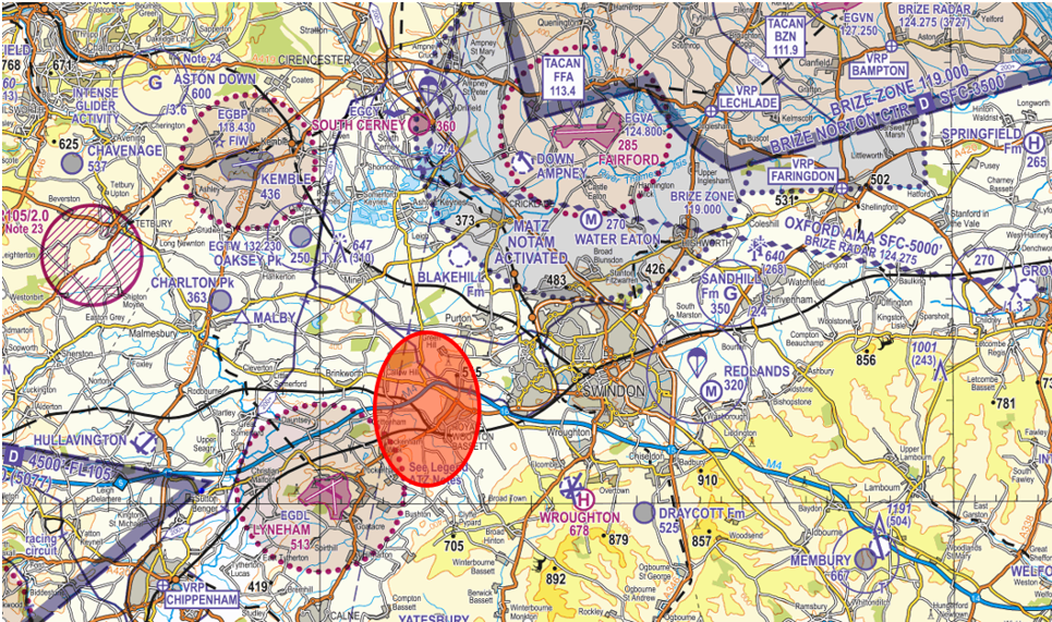 Figure 1: Hawarden ATZ and RMZ-1, RMZ-2, and RMZ-3 as shown on CAA/NATS 1:250,000 Sheet 5 Central England and Wales (Edition 15, 2023).